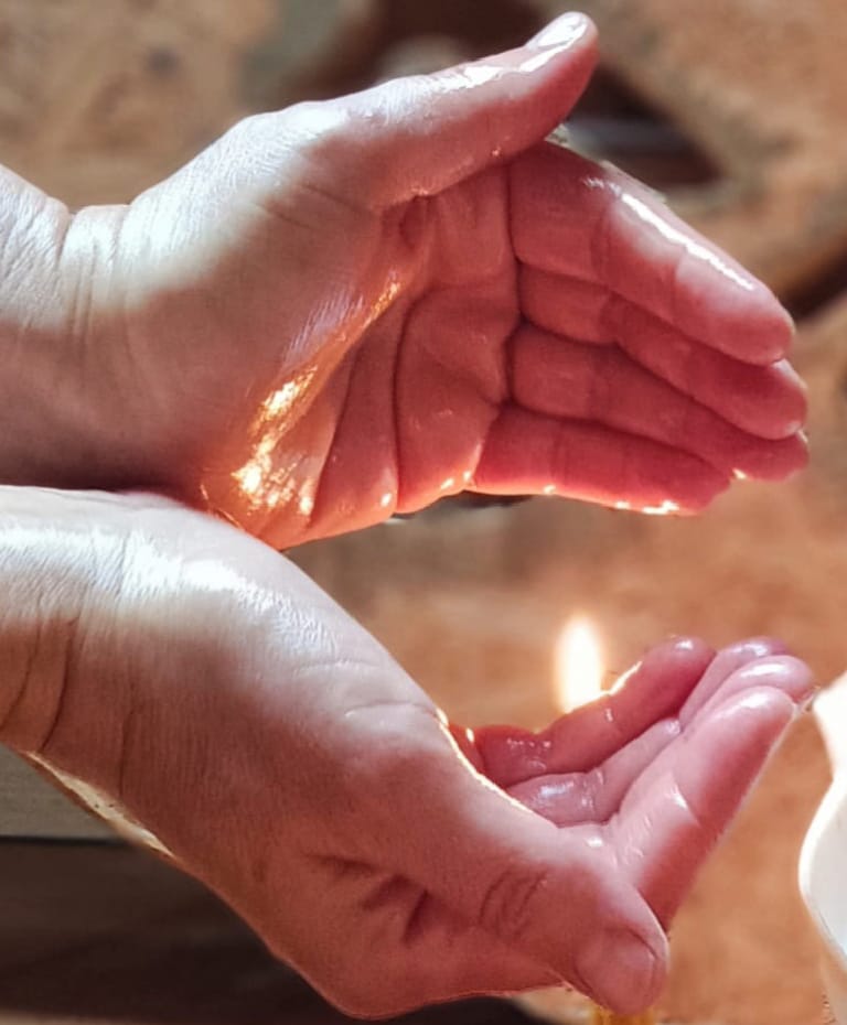 – masaż ajurwedyjski rozgrzewa, zmiękcza ciało, poprawia krążenie, udrażnia i reguluje wszelkie przepływy w ciele (plyny, energia, zdrowie);